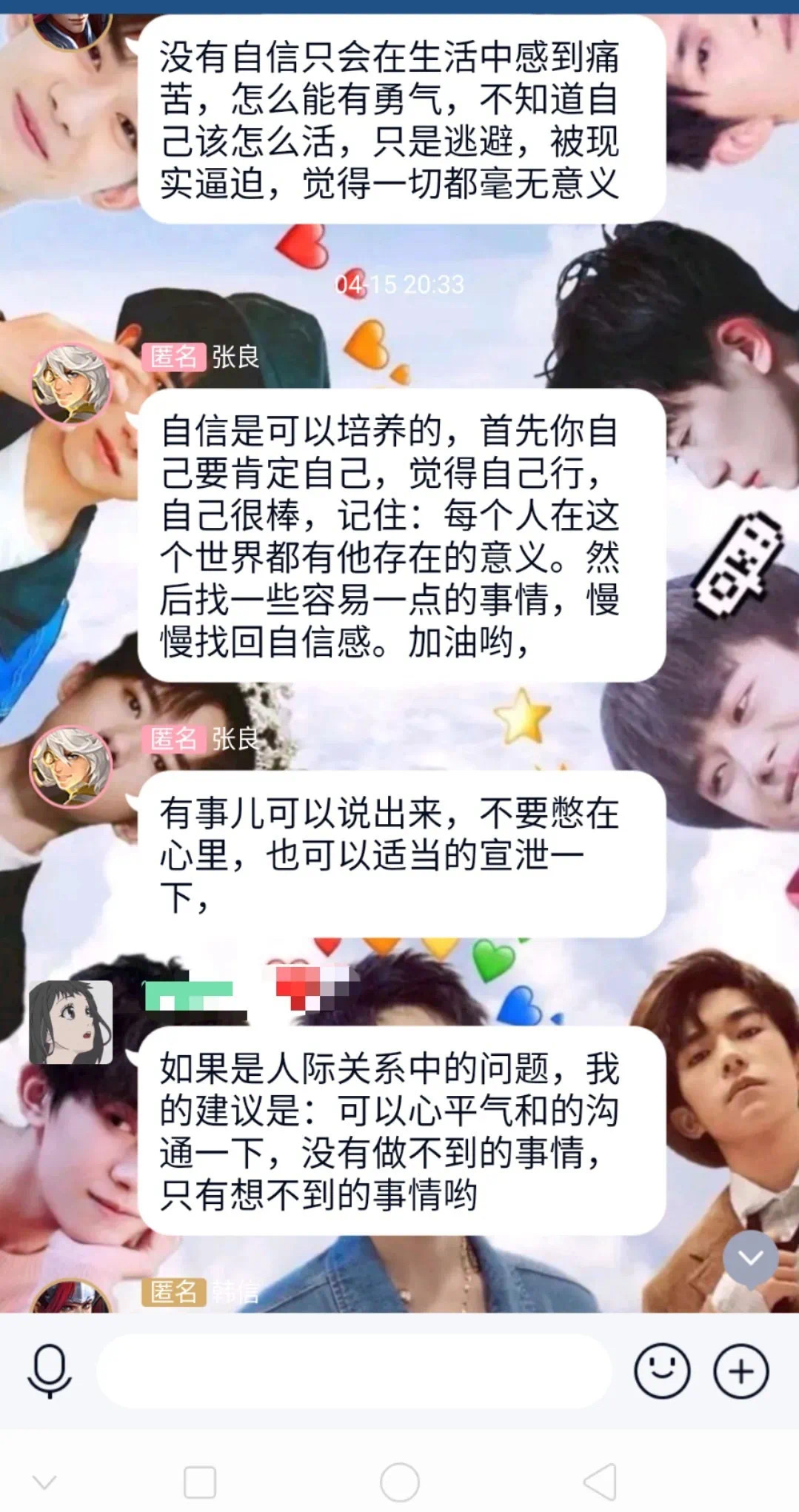 心理委員更是積極發揮自身能力,為在校生提供朋輩咨詢服務,舉辦“心靈樹洞”活動。為同學保護個人隱私,進行雙方匿名咨詢,方便前來咨詢的人可以放心吐露心聲,為同齡人提供最貼合自身的視角和觀點,加以引導及時幫助同學解決心中疑慮。活動開展以來,受到廣泛好評,已有10余位需要幫助的同學接受了匿名朋輩咨詢。