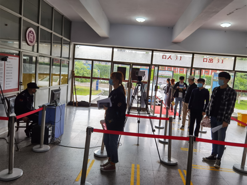 考生入場(chǎng)時(shí),嚴(yán)格按照學(xué)校疫情防控規(guī)章制度保持1米間隔,有序排隊(duì),經(jīng)紅外線體溫監(jiān)測(cè)儀依次進(jìn)入考場(chǎng)。