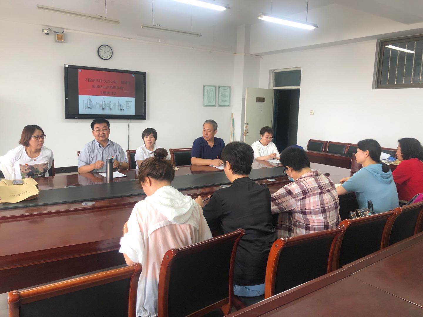 為激勵(lì)全院各民族師生黨員堅(jiān)定理想信念,推進(jìn)民族團(tuán)結(jié)進(jìn)步創(chuàng)建工作,提振廣大師生黨員干事創(chuàng)業(yè)的信心和決心,以更加優(yōu)異的成績迎接建黨99周年,6月24日下午時(shí),外國語學(xué)院黨總支在學(xué)院會(huì)議室組織開展了“久久為功,創(chuàng)建民族團(tuán)結(jié)進(jìn)步示范學(xué)校”主題研討活動(dòng)。會(huì)議由黨總支書記布日古德書記支持,學(xué)院教工黨員共計(jì)15人參加。