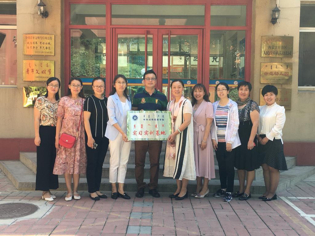 為了拓展學前教育專業校外實習實訓基地,提升學生專業技能,增強教師教研能力,7月14日上午9時,我校學前教育學院黨總支副書記其其格一行5人,前往內蒙古自治區機關事務管理局政府機關幼兒園,簽訂實習實訓基地協議書,并進行掛牌儀式。內蒙古自治區機關事務管理局政府機關幼兒園園長田勁枝、副園長蘭霞、副園長陳淑艷、副園長趙婷婷和我校教務處實踐教務科科長哈達、就業指導處就業指導科科長王慧東、學前教育學院教學科研辦公室主任朱烏英嘎、學前教育理論教研室主任石翠紅等參加了本次簽字儀式。