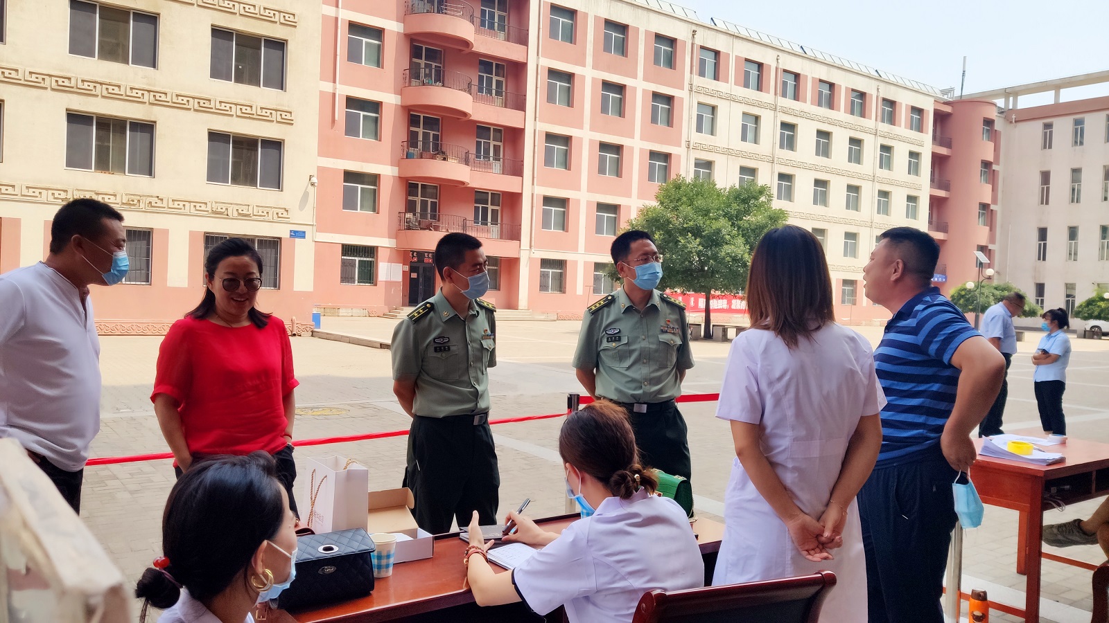 為做好2020年征兵工作,在學校領導的高度重視及正確引導下,我校武裝部大力開展形式多樣的征兵宣傳活動,通過微信公眾號、班級微信群、易班網、專線電話咨詢等方式多渠道、全方位宣傳動員。在各學院以及輔導員老師的積極配合下,我校共有300名學生積極響應國家號召報名參軍入伍。7月24日上午,新城區人武部部長孟樹濤、新城區人武部軍事科科長孫海彬,我校武裝部部長楊福梅、副部長陳青春等老師帶領2020年報名應征入伍大學生參加入伍應征初體檢。