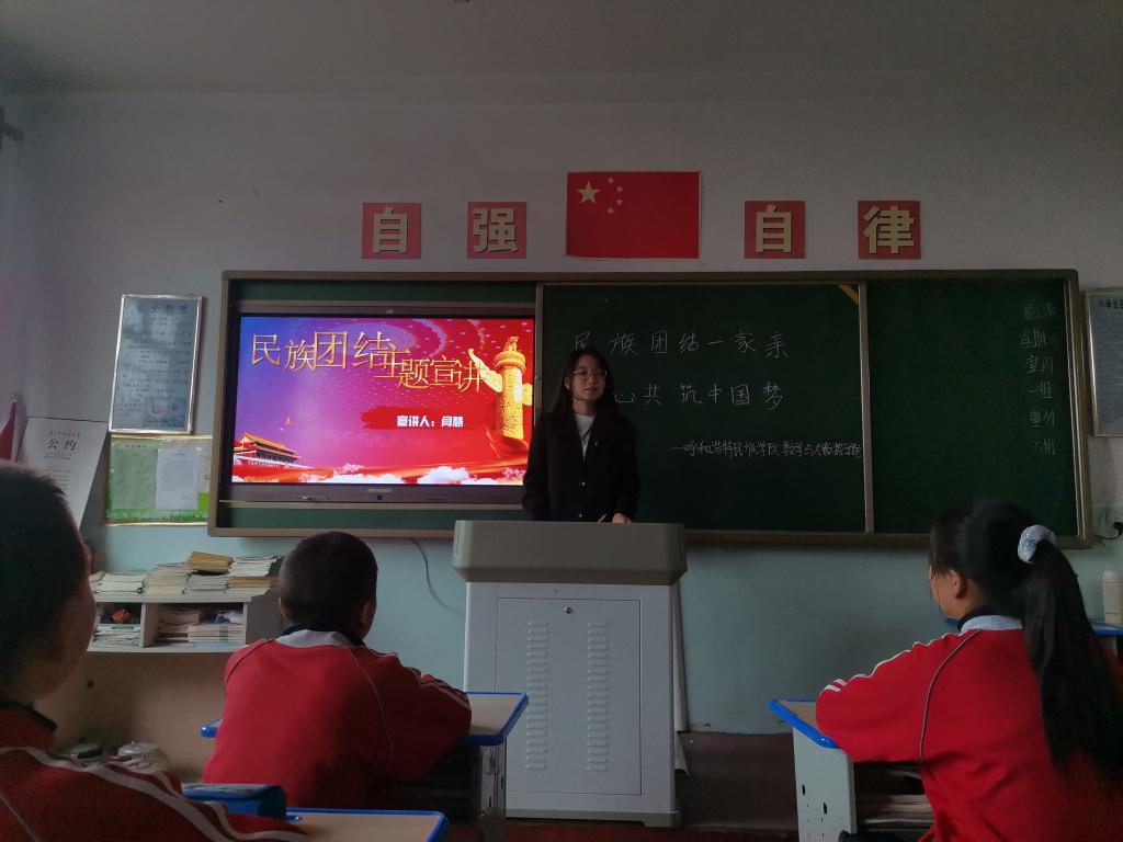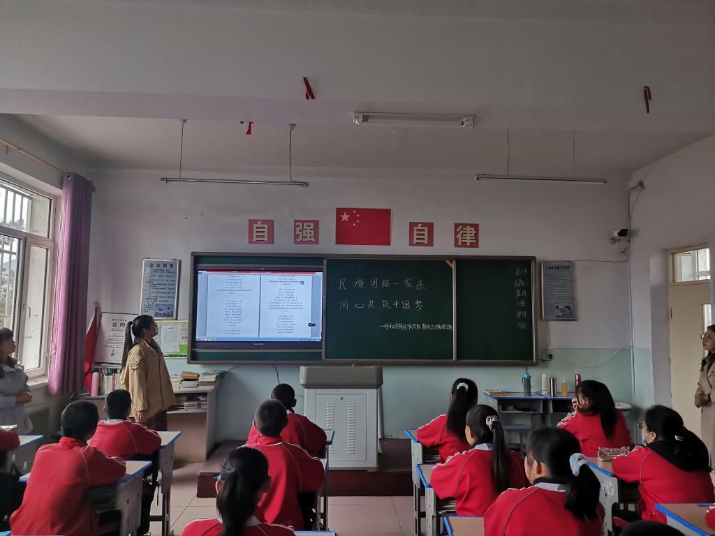 與此同時,我校數學與大數據學院學生還為旗下營中心學校學生舉行了民族團結主題宣講、民族團結知識競答、觀看民族團結微電影、組織學生唱愛國主題歌曲等活動,并發放了精心準備的小禮品。