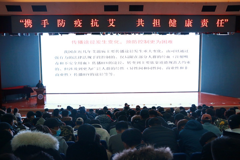“攜手防疫抗艾 共擔健康責任”在第33個世界艾滋病日到來之際,按照自治區教育廳《關于組織開展2020年“世界艾滋病日”和“生殖健康知識進高校”宣傳教育活動的通知》內教體函(2020)29號文件精神要求,11月30日晚由學生工作部、后勤管理處在學校圖書館二樓報告廳聯合舉辦了艾滋病系列健康教育活動,本次活動得到了內蒙古自治區疾病預防控制中心和呼和浩特市新城區疾病預防控制中心的大力支持。內蒙古綜合疾病預防控制中心性病艾滋病防治科主任楊景元教授、新城區疾病預防控制中心樊建華書記、學生工作部陳青春副部長、張玉梅副部長、后勤管理處楚長利處長、于海深副處長出席本次活動,活動由醫務所劉晉雯所長主持。