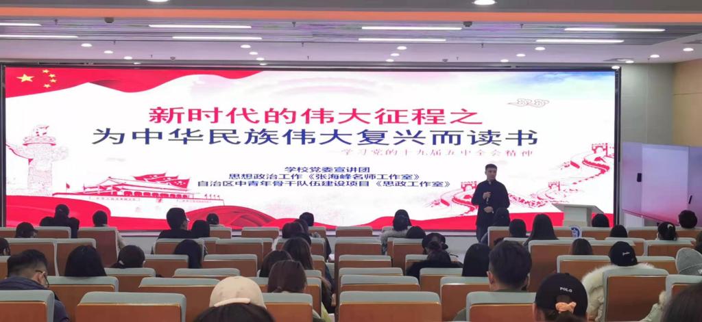為深入學習貫徹黨的十九屆五中全會精神,學前教育學院、馬克思主義學院、音樂學院聯合主辦,由學校黨委宣講團、自治區思想政治工作“張海峰名師工作室”、自治區中青年骨干隊伍建設項目“思政工作室”承辦,于12月10日晚上7點在圖書館一樓思政理論課教學基地舉辦了“學習貫徹黨的十九屆五中全會精神”宣講會。宣講會由學前教育學院黨總支書記娜仁其木格主持,學前教育學院、馬克思主義學院、音樂學院師生代表100余人參加宣講會。
