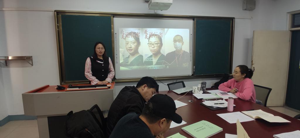 活動伊始,由新聞學專業薩仁高娃老師代表任課教師向在場人員介紹了我?!爸袊侣剛鞑ゴ笾v堂”活動的準備情況和開課的重大意義。隨后與大家分享了大講堂第一課“來自武漢抗擊疫情的第一線”相關宣教內容,共同領悟和學習了中國的抗疫精神。