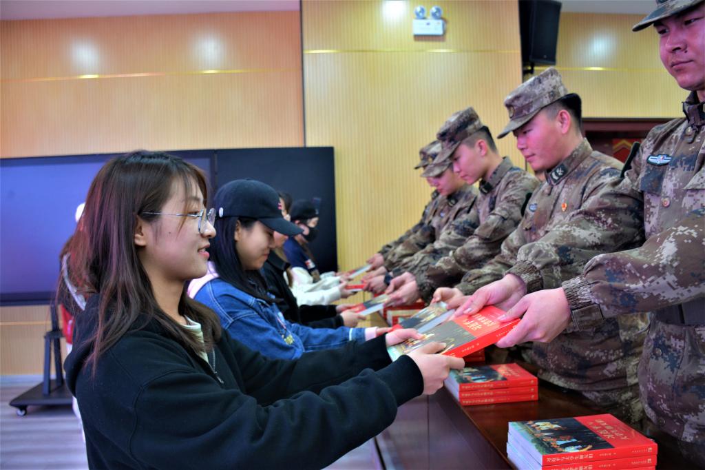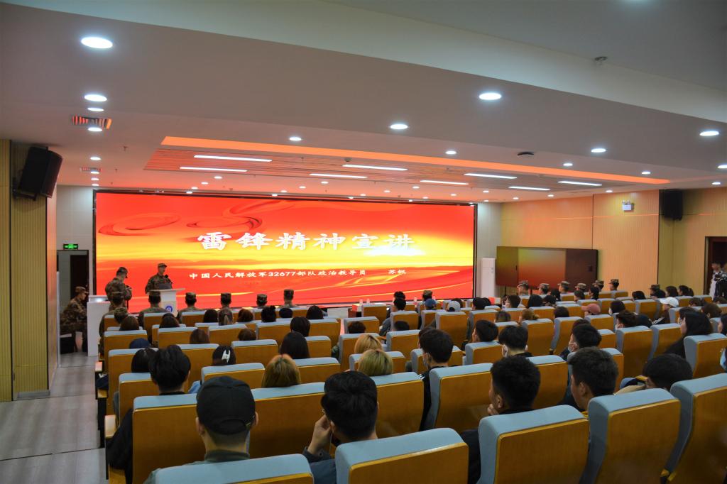 活動中特別邀請到中國人民解放軍32677部隊政治教導員蘇楓和20名教官。為我校學生開展了以“弘揚雷鋒精神 爭當強軍先鋒”為主題的宣講。宣傳和弘揚雷鋒精神,通過學習雷鋒事跡、分享身邊的“雷鋒”故事、探討新時代雷鋒精神等多種形式,幫助廣大團員青年深刻領會雷鋒精神的時代內涵。通過活動,同學們紛紛表示要自覺把雷鋒精神內化于心、外化于形,樹立新學期的奮斗目標,爭當新時代好青年。隨后教官向同學們進行了贈書活動。