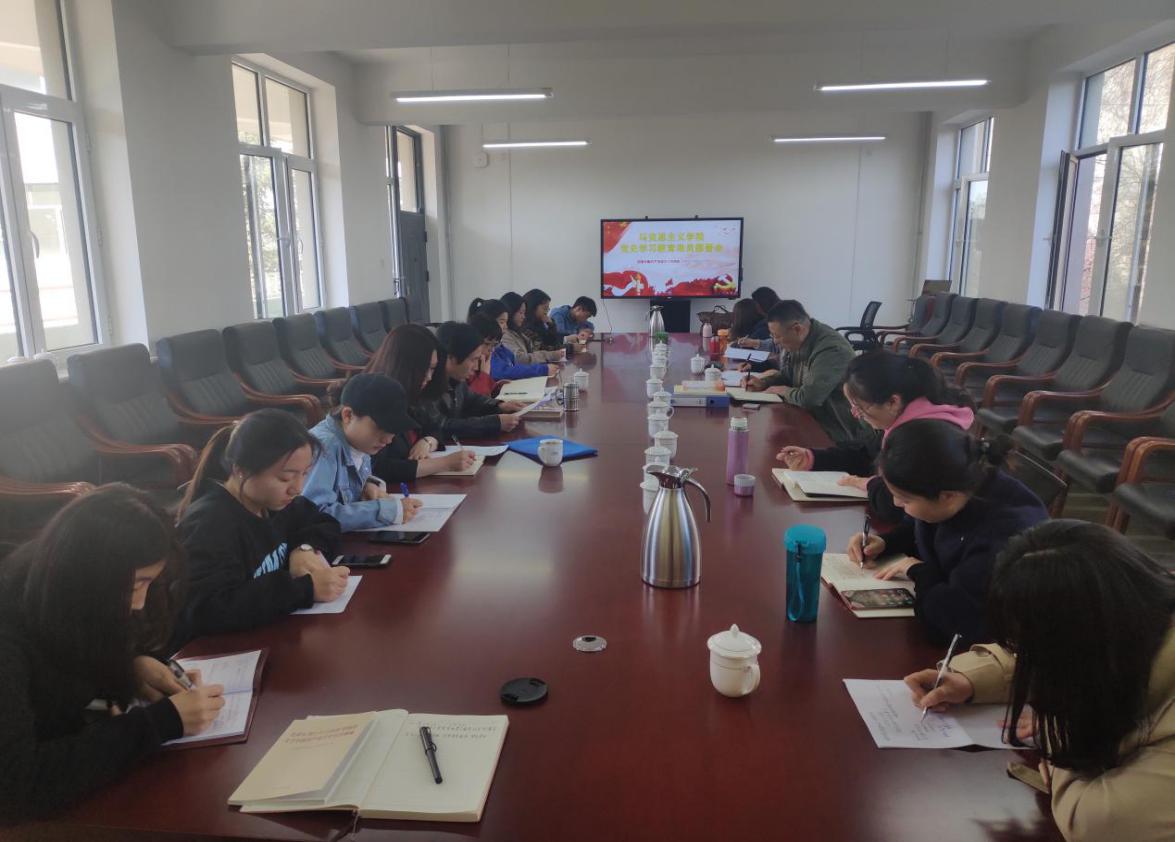 會上黨總支書記額斯日格倉傳達學校黨委黨史學習教育動員大會的有關(guān)精神,宣讀了學院開展黨史學習教育實施方案并做表態(tài)發(fā)言。額書記強調(diào),要全面貫徹落實學校黨委部署要求,迅速開展黨史學習教育,按照已制定的方案要求,推進相關(guān)舉措和各項工作的有序開展,確保黨史學習教育取得實際成效。黨總支副書記韓瓊就習近平總書記在黨史學習教育大會上的講話精神進行解讀,并提出具體學習要求。