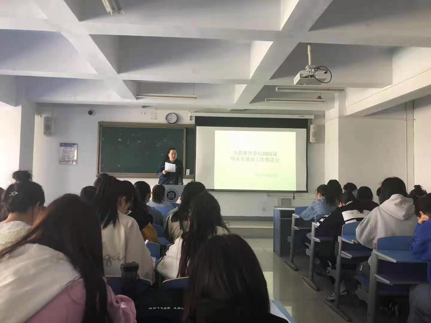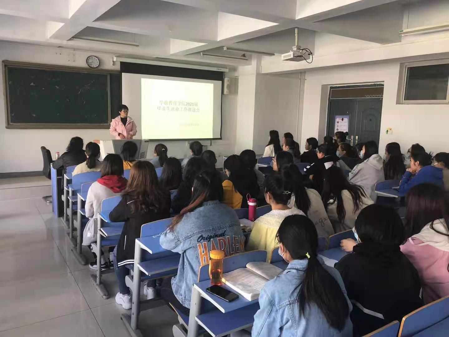 為深入貫徹落實自治區(qū)、學(xué)校關(guān)于促進高校畢業(yè)生就業(yè)工作文件精神和決策部署,推動學(xué)院進一步完善就業(yè)工作服務(wù)體系,確保我院2021屆畢業(yè)生順利、高質(zhì)量就業(yè),學(xué)前教育學(xué)院于4月27日在都林樓310、312、314教室分別組織2021屆畢業(yè)生召開了就業(yè)工作推進會。學(xué)院黨總支書記娜仁其木格老師、學(xué)院就業(yè)工作負責(zé)人張璟華老師參加會議,會議由學(xué)前教育學(xué)院畢業(yè)班班主任老師主持。