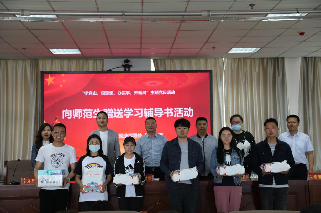28日下午,行政黨總支、就業指導處(黨支部)在綜合樓12樓會議室舉辦了“我為師生辦事實—向師范生贈送學習輔導書”主題黨日活動。傳習教育機構積極為我校師范學生免費提供了總價53168元的幼兒版、小學版、中學版教師招考輔導書共5700本及一期免費網課,此項活動為同學們進一步提升和鞏固專業知識打下堅實基礎。