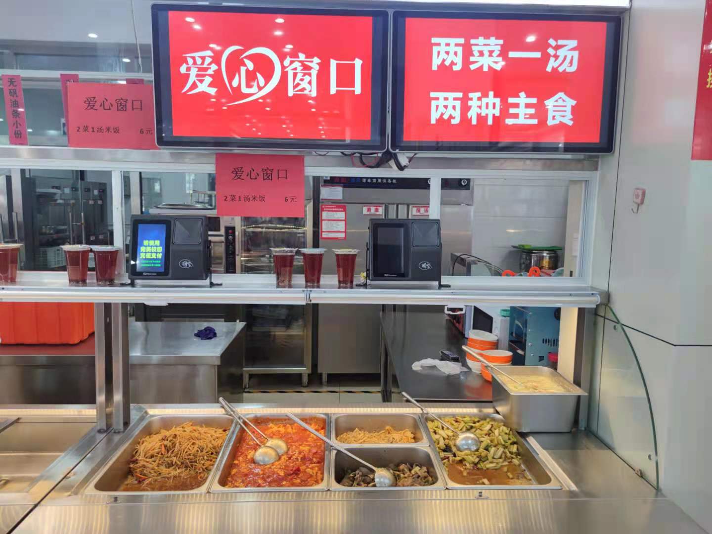 為保證學(xué)校每位同學(xué)都能吃飽吃好,學(xué)校提供政策支持幫扶,學(xué)校餐飲服務(wù)中心在南、北食堂開設(shè)“愛心窗口”,為同學(xué)們提供美味菜品,服務(wù)莘莘學(xué)子。每個愛心窗口每餐安排5道熱菜、2種主食、1種湯,每天不重樣,中午與晚上皆開放,學(xué)生們可自選2菜1主食1湯,自選愛心套餐每人只需支付6元。愛心窗口現(xiàn)已開設(shè)半個月,來就餐同學(xué)絡(luò)繹不絕,每天平均賣出300余份愛心餐。