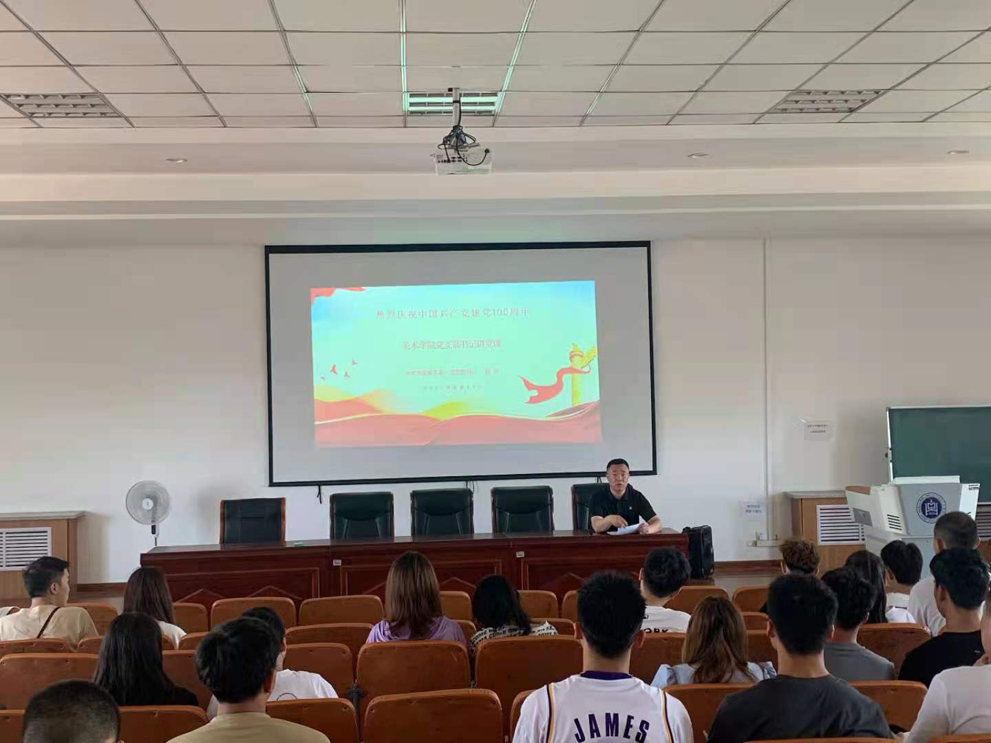 本次培訓班由美術學院黨總支書記包旭東作了題為《建黨百年憶初心,砥礪奮進擔使命》的專題輔導黨課;美術學院黨總支副書記、教工一支部書記吳利春作了《中國共產黨章程解讀講座》;美術學院副院長、教工二支部書記塔娜作了《光輝百年歷程》黨史專題輔導講座;學生一支部書記魏偉作了《習近平總書記在黨史學習教育動員大會上的重要講話精神學習輔導講座》;學生二支部書記常志君作了《鑄牢中華民族共同體意識專題輔導講座》以及邀請兩位畢業生黨員作了《青春心向黨,建功新時代》優秀黨員畢業生專題教育講座。6月28日上午,還組織師生黨員在辦公樓四樓會議室聆聽了美術學院聯系領導、學校紀委書記、監察專員王冬梅講授的《中國共產黨紀律處分條例》(2018年修訂版)解讀專題講座。