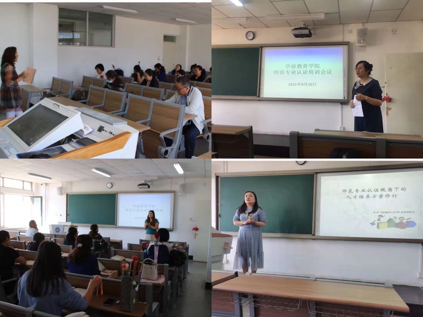 9月10日上午,學前教育學院在尚智樓208舉辦了師范專業認證培訓報告會議。會議由學前教育學院副院長其其格主持,學校教師專業發展中心胡畢斯哈拉圖處長、陳娜仁其木格副處長、敖金山老師和全體學前教育學院教師參加了本次會議。