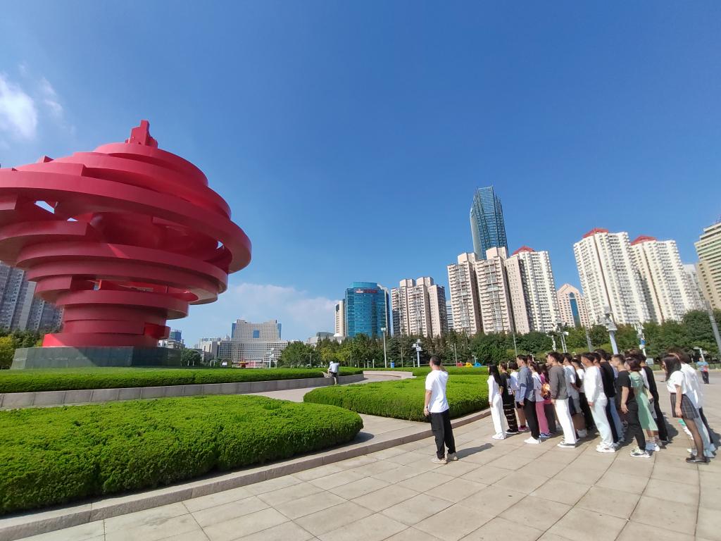 活動中,師生們參觀了“紅色足跡”青島革命文物保護利用成果展。當天適逢“九一八”事變的九十周年,大家懷著沉重的心情,莊嚴的站在五四廣場上,悲憤之情和使命之感在心中噴涌激蕩。建黨一百年以來,中華民族洗刷了昔日的屈辱自立于世界民族之林,我們依然懷念那些為了我們今天的美好時光獻出年輕生命的人們,佇立在青島東部新區(qū)“五四”廣場中心的巨大紅色風旋,就是為了紀念那些當年為今天能自由、美好、安寧、祥和而獻身的人們建立的,也是對那些為了國家強盛、民族復興獻身的先驅(qū)者們的崇高紀念。