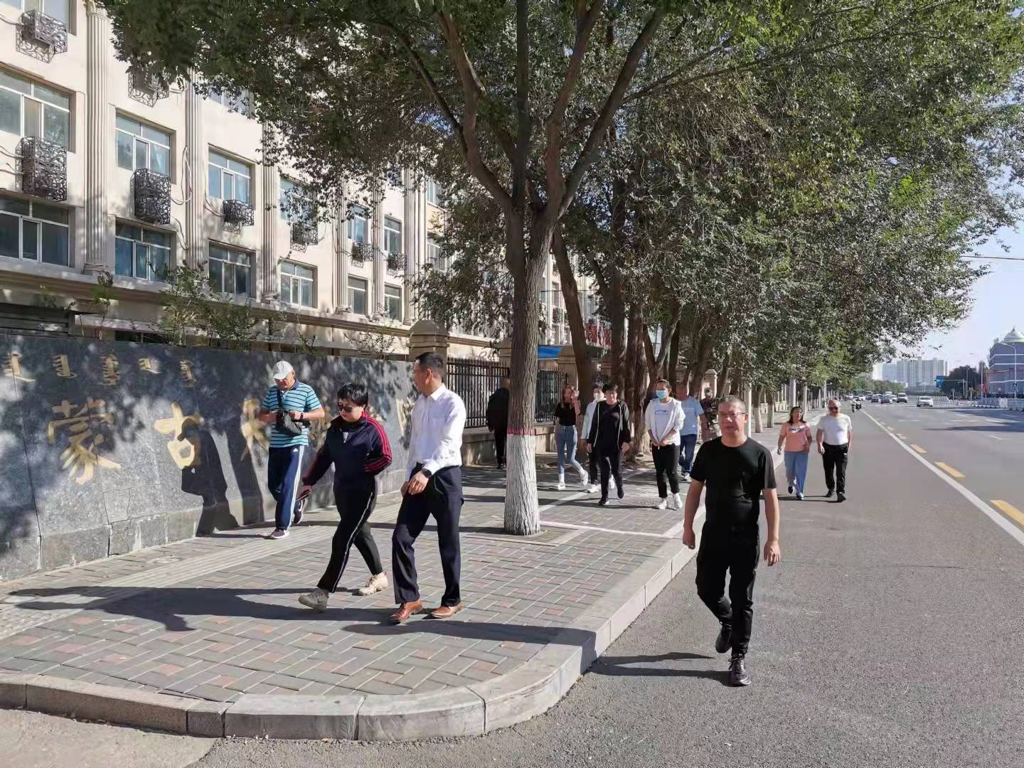 健步行萬里,斗志愈昂揚。為深化民族團結進步教育,鑄牢中華民族共同體意識,弘揚民族團結奮斗精神,9月29日下午,行政分工會開展“守望相助團結奮進”健步走活動,教師們從學校西門出發,途經賽馬場北路、氣象局北路,最后由學校東門返回。