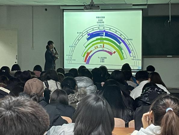 沈曉倩老師就職業生涯規劃的生涯喚醒、性格探索、職業專業三個方面作了詳細的闡述,并通過生涯彩虹圖和生涯九宮格,指導學生樹立短期及長期目標,深入淺出、形象生動地給學生的職業生涯規劃以及如何自我提升指明方向。