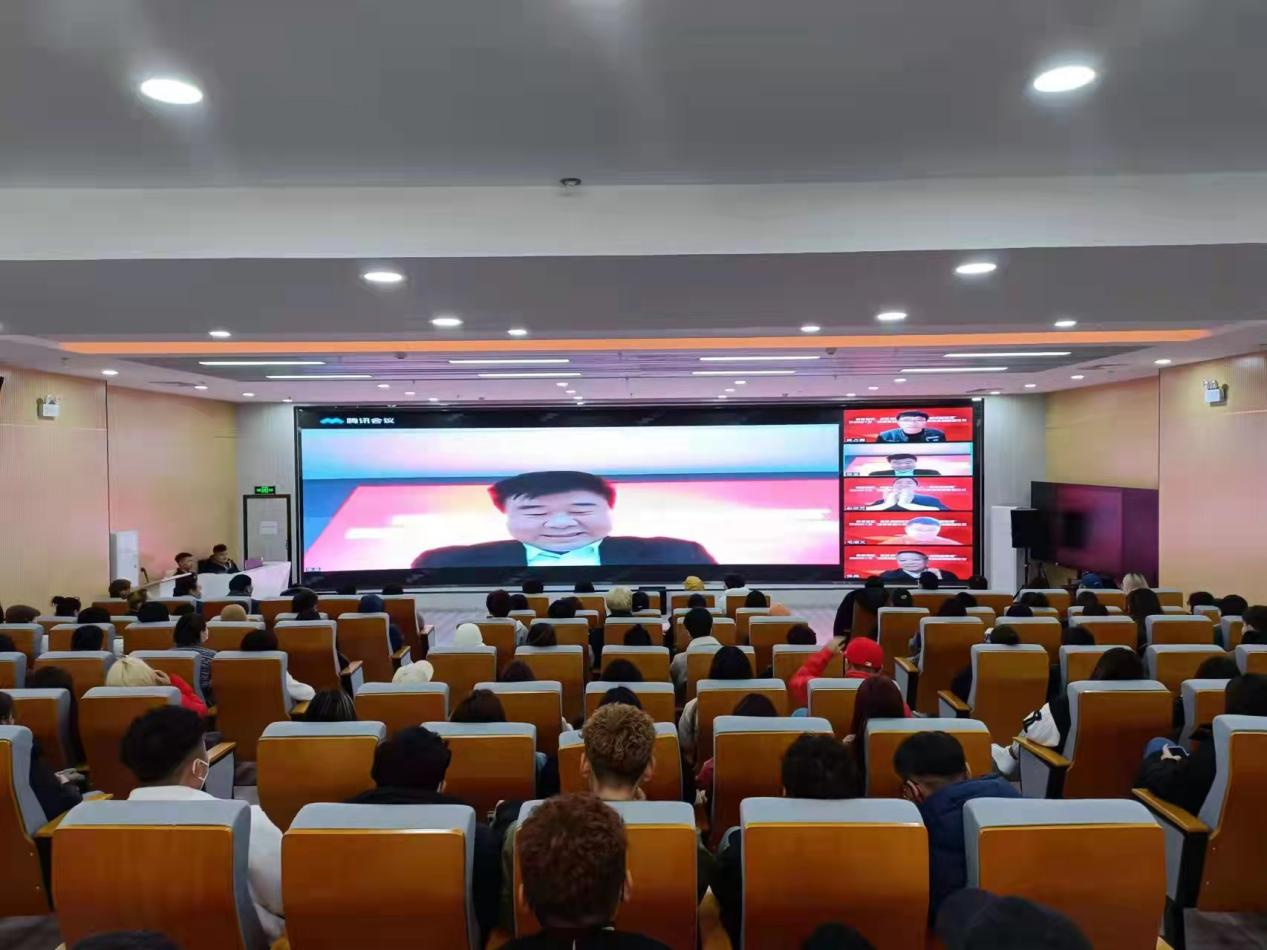 12月5日下午,由中央民族大學新聞與傳播學院舉辦的西部地區、民族地區高校“共上一堂馬新觀課”暨2021年“新聞傳播大講堂”學習交流活動啟動儀式在線上舉行。新聞傳媒學院組織全體師生在圖書館一樓報告廳集體觀看了此次直播。