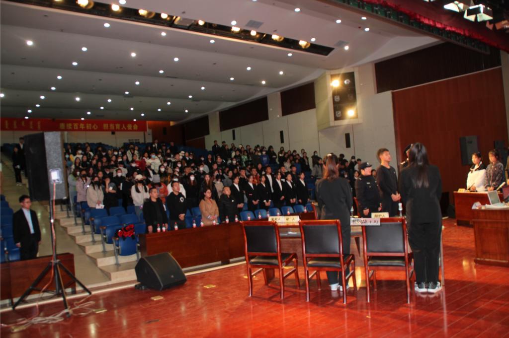 為深入貫徹落實習近平法治思想,持續深化立德樹人的根本宗旨,圍繞今年第八個國家憲法日主題“以習近平法治思想為指引,堅定不移走中國特色社會主義法治道路”,踐行“八五普法”精神,學校團委、法學院于2021年12月7日下午在學校圖書館二樓報告廳舉辦了“筑法之基、崇法力行”模擬法庭庭審、法律咨詢等法治宣傳活動。學校團委副書記白銀亮、法學院黨總支書記烏蘭其其格、副院長朝克圖和各二級學院學生共500余人到場觀看。
