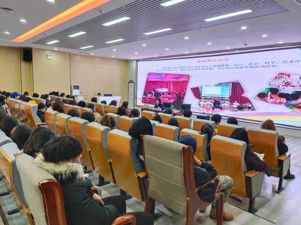 12月10日上午,學(xué)前教育學(xué)院邀請新城區(qū)第一幼兒園園長計爽作專題講座——“探尋幼兒園的‘秘密’”。本次講座由學(xué)前教育學(xué)院副院長其其格主持,學(xué)前教育學(xué)院的學(xué)生及部分教師參加。