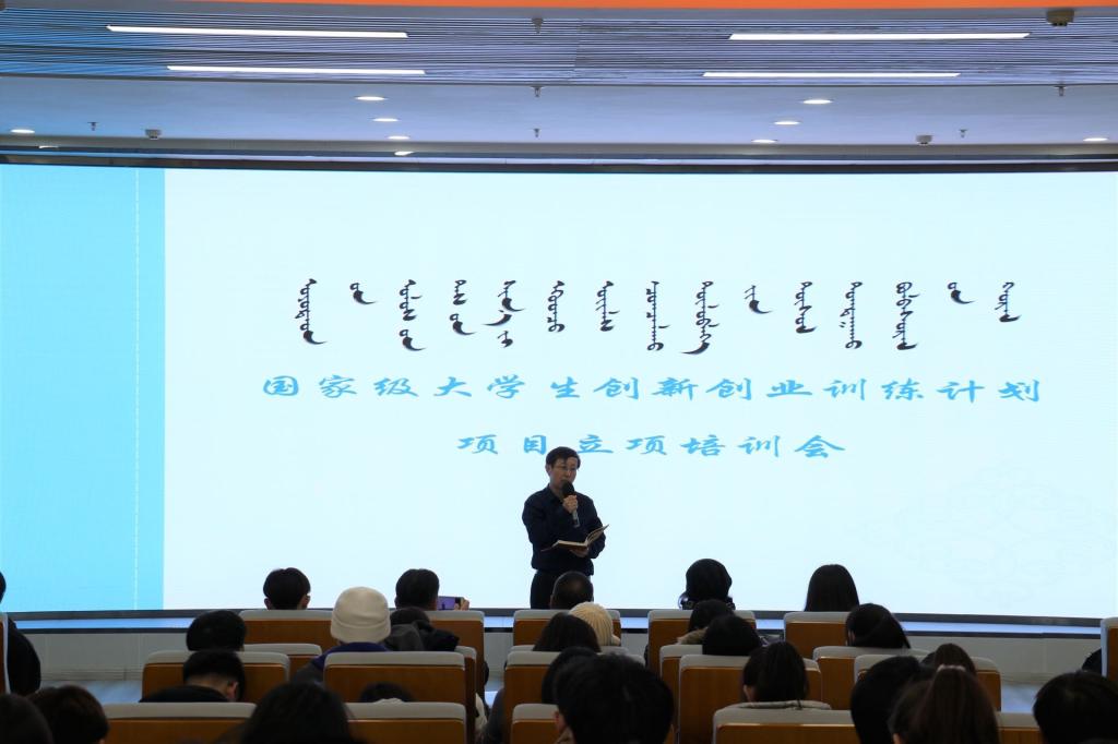 本次培訓會邀請內(nèi)蒙古財經(jīng)大學創(chuàng)業(yè)學院副院長徐軍副教授以“大創(chuàng)訓練計劃培養(yǎng)祖國建設者”為題目做了專題講座,徐軍老師圍繞大學生如何提升應用能力、大創(chuàng)讓大學生具備思辨能力等實際問題,從國創(chuàng)訓練項目的類別含義、立項目的、項目訓練過程和管理、結(jié)項結(jié)題等四個維度為參會師生做了詳盡的講解。創(chuàng)新創(chuàng)業(yè)學院院長哈斯同力嘎做了培訓總結(jié)。