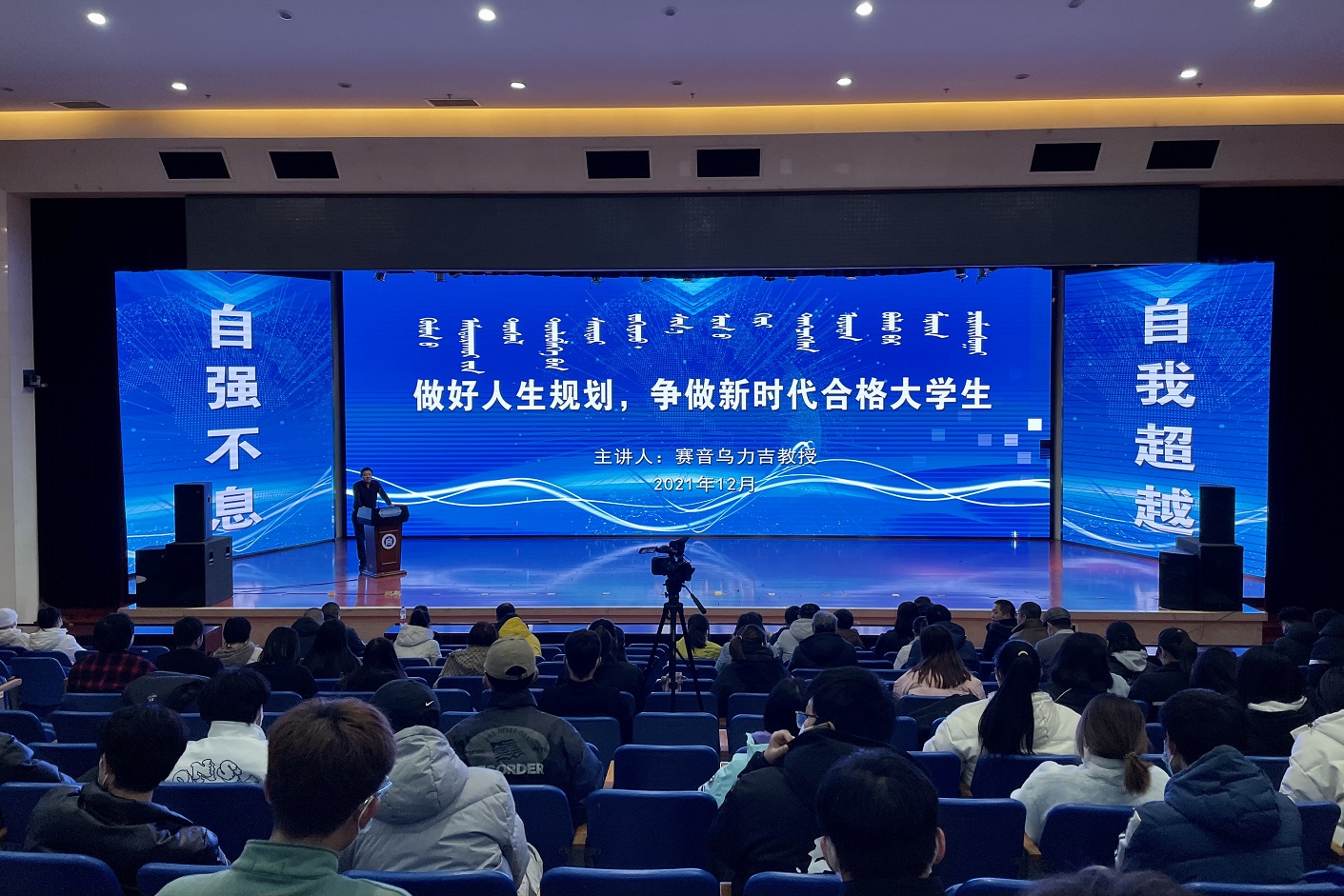講座邀請我校賽音烏力吉教授作了題為“做好人生規劃,爭做新時代合格大學生”的誠信教育專題輔導。賽老師從“做好人生規劃是大學時光的良好開頭”“抓住機遇,努力學習是大學生的核心任務”“適應環境,堅守誠信是處理好人際關系的關鍵”“自我超越,自強不息是人生成功之母”等四個方面,要求學生做好人生規劃,處理好大學人際關系,不斷尋找機遇迎接挑戰。他希望同學們都能對自己的未來發展作出一個正確、合理的人生規劃,抓住機遇,努力學習,堅守誠信,自強不息,實現自我超越。