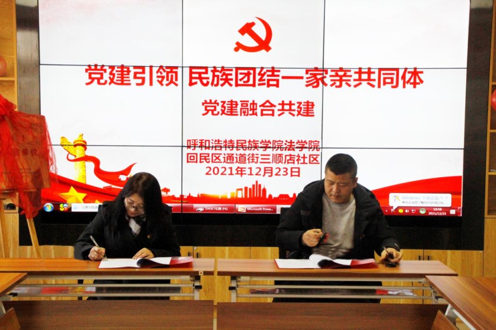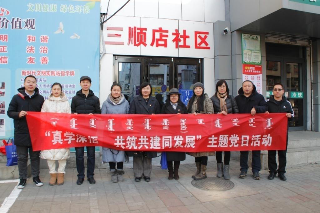12月23日上午,由呼和浩特民族學院法學院與呼和浩特市回民區通道街街道三順店社區共同舉辦的“黨建引領 民族團結一家親共同體”主題黨建融合共建活動在三順店社區黨群服務中心舉行。法學院黨總支書記烏蘭其其格、副書記包玉柱、教工支部黨員,三順店社區居委會副主任王杰義及相關人員參加活動。