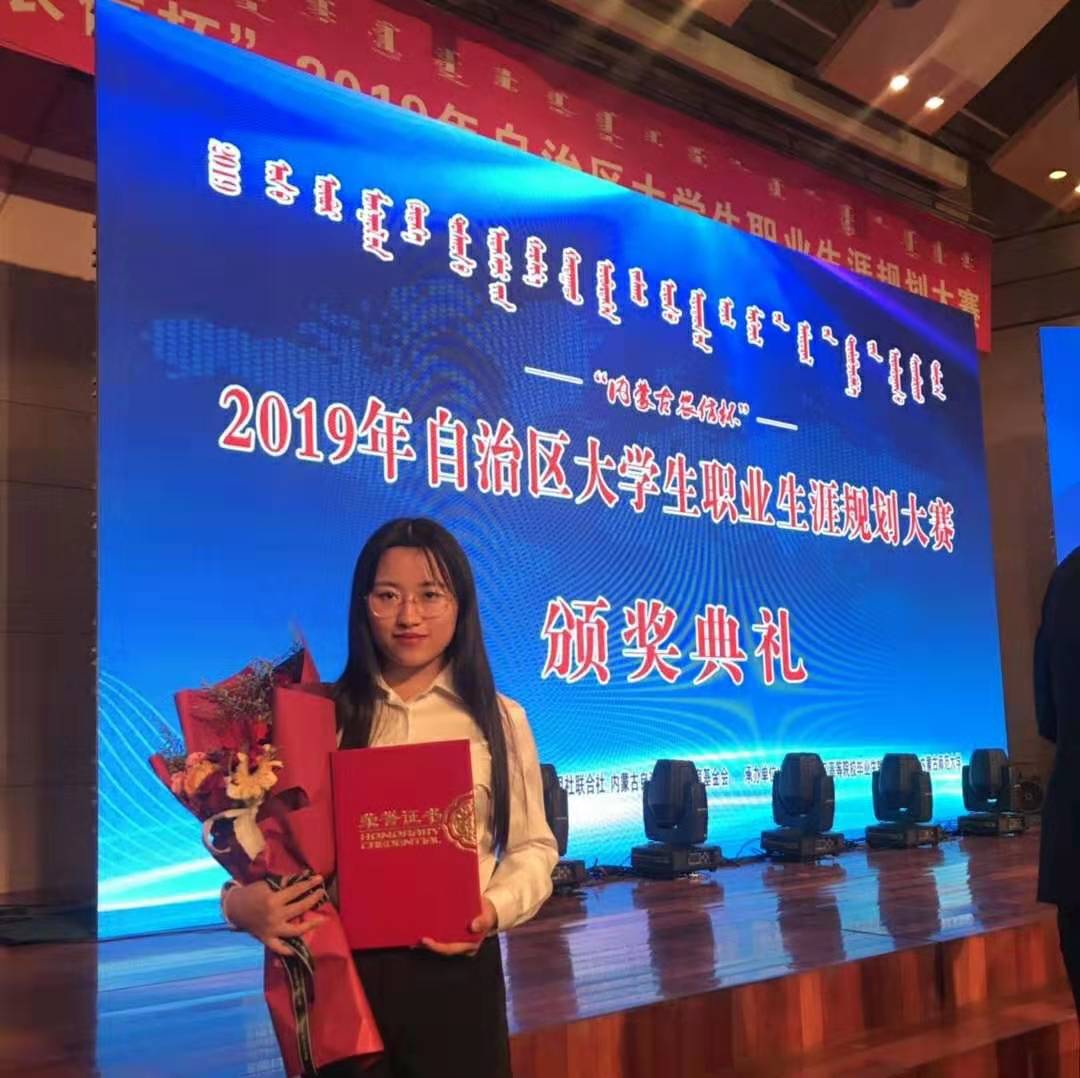 12月15日,“內(nèi)蒙古農(nóng)信杯”2019年全區(qū)大學(xué)生職業(yè)生涯規(guī)劃大賽總決賽在內(nèi)蒙古師范大學(xué)圓滿落幕。我校化學(xué)與環(huán)境學(xué)院陳雯慧同學(xué)獲優(yōu)秀獎 。