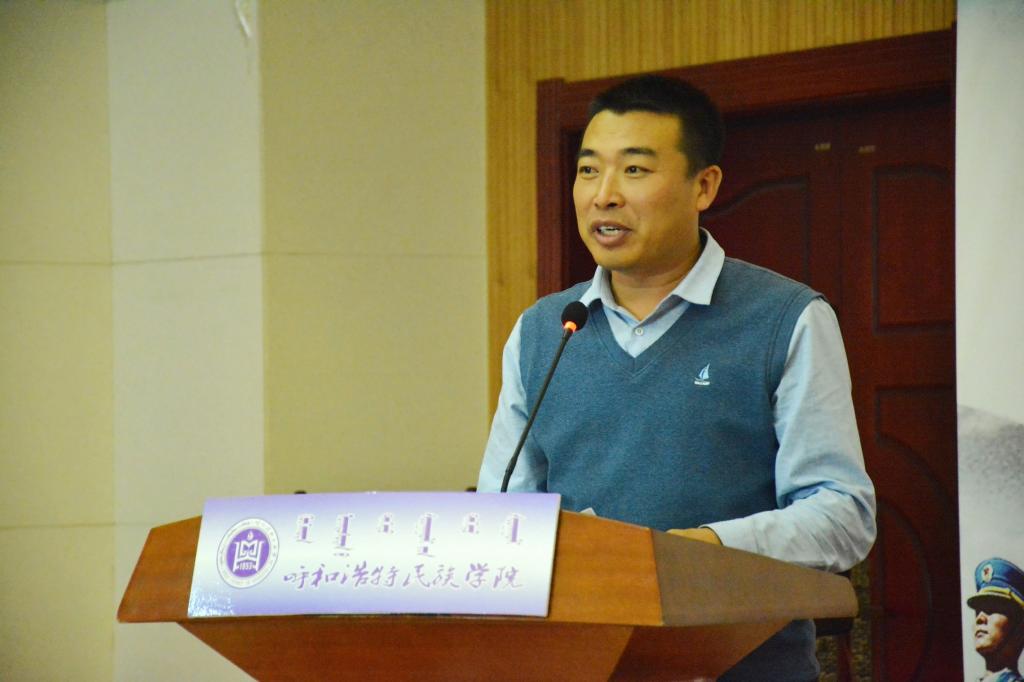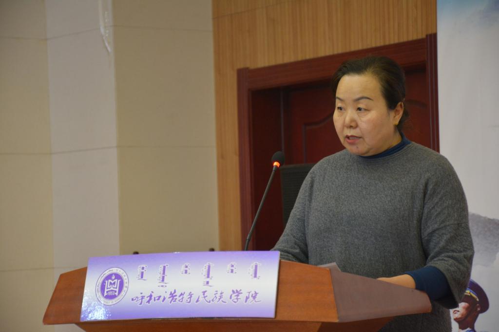 武裝部副部長張玉梅宣讀《關于成立呼和浩特民族學院大學生退役軍人協會》的決定
