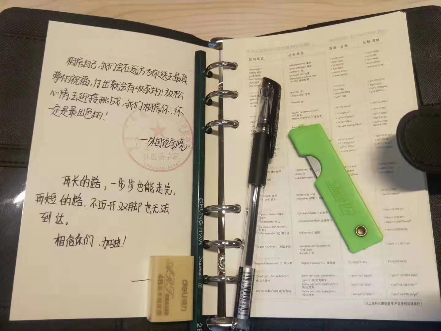 寫有學(xué)弟學(xué)妹祝福的筆記本