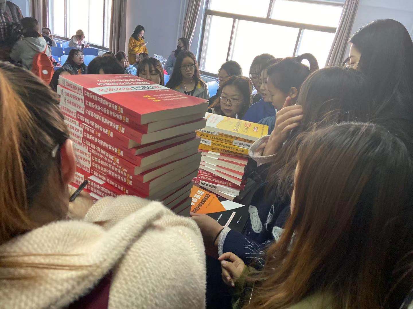 講座期間,為助力學子公考,中公教育還為我院學生免費發放公務員考試等書籍200多冊。