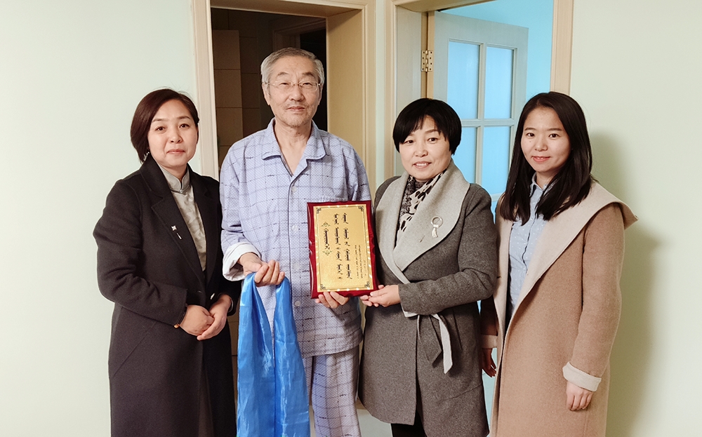 為深入推進“不忘初心、牢記使命”主題教育工作,11月7日——11月11日,新聞傳媒學院黨總支書記額爾敦畢力格和院長哈申圖雅攜教工支部黨員代表,走訪慰問了四位退休教師,將“不忘初心、牢記使命”主題教育紀念牌匾和慰問品發放至每一位老教授的手中,基于初心不改師為范、使命傳道立為德的赤誠,為老前輩們送上黨組織的親切關懷,表達了崇高的敬意。