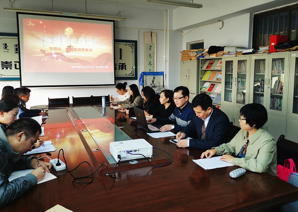 首先,學(xué)院黨總支書記額爾敦畢力格同志講授了主題為《守初心,擔(dān)民族教育重任》的專題黨課,分別在關(guān)于初心和使命的認(rèn)識、新聞傳播類專業(yè)學(xué)風(fēng)建設(shè)促學(xué)生管理工作調(diào)研情況、加強(qiáng)和改進(jìn)工作的思路舉措三個方面進(jìn)行了講授。
