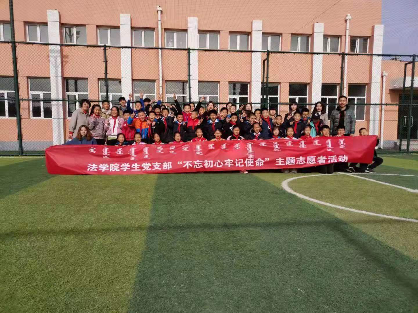為扎實推進“不忘初心、牢記使命”主題教育工作,進一步提高學生黨員、發展對象的服務意識,11月4日上午,法學院學生黨支部組織委員姜鵬老師帶領13名學生黨員和發展對象,赴成吉思汗街小學開展了“不忘初心、牢記使命”的志愿者服務活動。