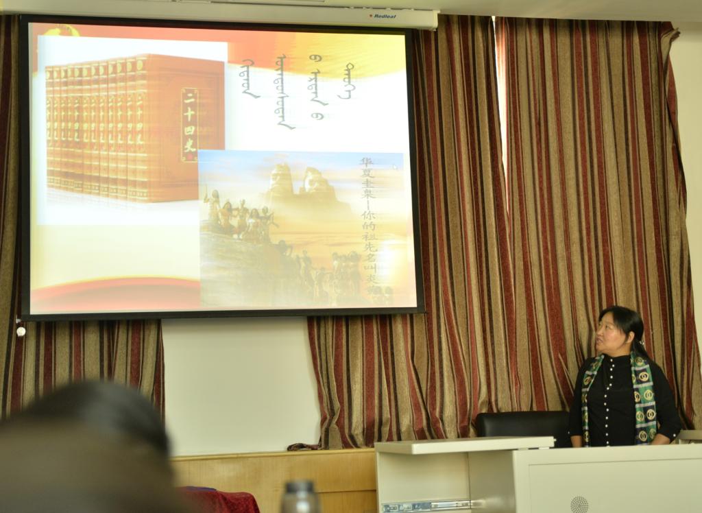 趙梅蘭老師以9月27日習近平總書記在《全國民族團結進步表彰大會上的講話》為切入點,闡釋了習近平總書記“要以鑄牢中華民族共同體意識為主線,全面貫徹黨的民族理論與民族政策,堅持共同團結奮斗、共同繁榮發展,把民族團結進步事業作為基礎性事業抓緊抓好,促進各民族像石榴籽一樣緊緊擁抱在一起,推動中華民族走向包容性更強、凝聚力更大的命運共同體,共建美好家園,共創美好未來”的要求,并深入淺出地講述了習近平總書記中華民族共同體意識的形成與發展過程。