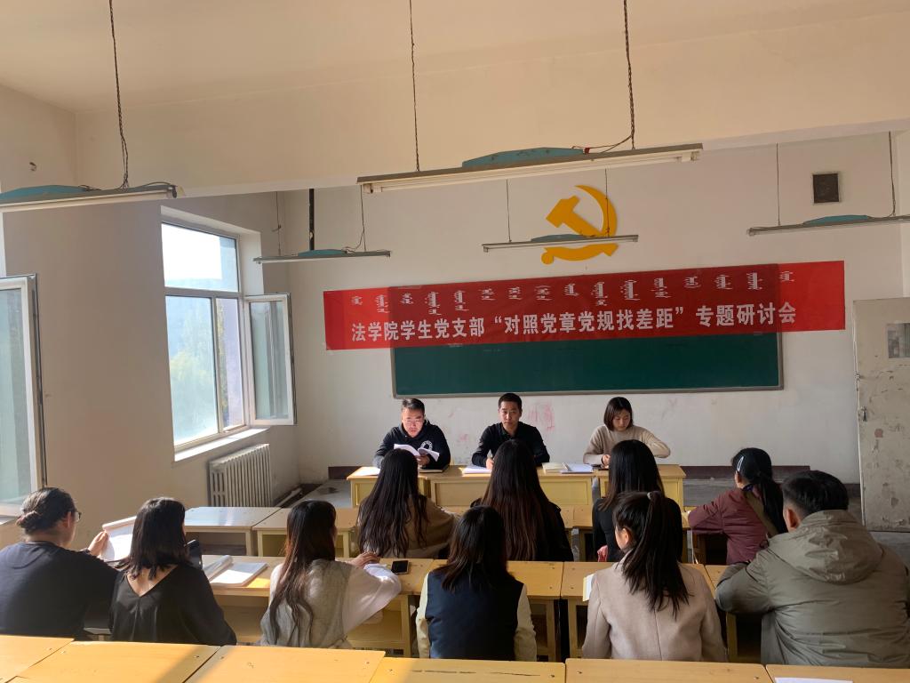按照學院“不忘初心、牢記使命”主題教育要求,11月4日,法學院學生黨支部召開“對照黨章黨規找差距檢視問題”專題研討會。學生黨支部書記包玉柱主持,全體學生黨員參加。