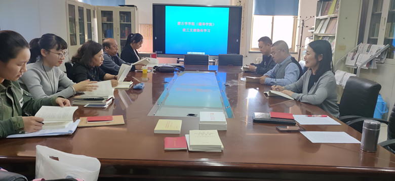 10月31日下午,依照學(xué)校黨委“不忘初心、牢記使命”主題教育部署要求,蒙古學(xué)學(xué)院教工黨支部組織支部黨員在都林樓409會(huì)議室開(kāi)展集中學(xué)習(xí)。