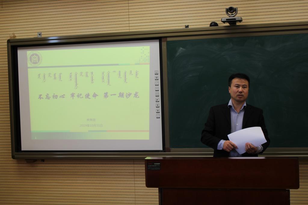 10月31日, 為推進“不忘初心、牢記使命” 主題教育整改階段工作,提升課堂教學效率,學校在綜合樓802室舉辦了第一期“教學沙龍”活動,本期“以混合課程改革為助力,提升課堂教學質(zhì)量效率”為題,邀請超星爾雅課程顧問金牧蘭和內(nèi)蒙古艾么網(wǎng)絡科技有限公司課程經(jīng)理芒來么爾根等校外專家作專題報告。活動由黨委委員、教務處處長額爾敦布和主持,教務處副處長佟繁榮、學校2018、2019年自治區(qū)在線課程團隊成員和近兩年新引進的老師等50多人參加了本次活動。