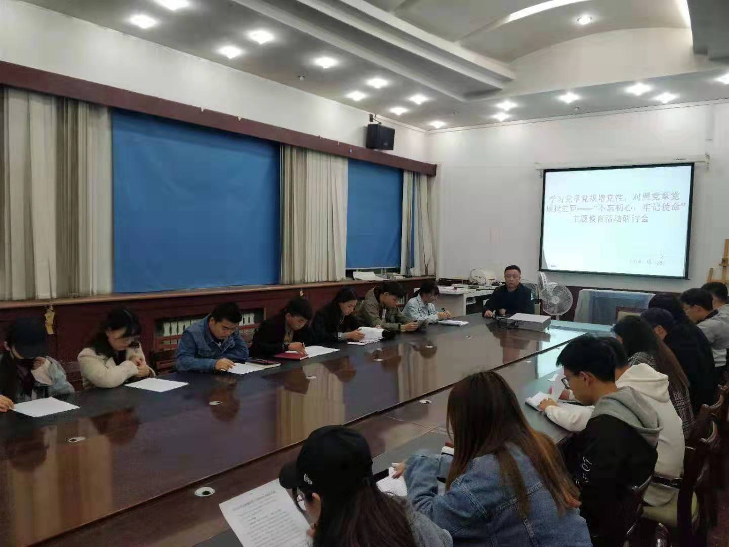 10月28日晚,學生第一、第二黨支部在美術四樓會議室召開“學習黨章黨規增黨性、對照黨章黨規找差距”主題教育學習討論會。會議由學生第一支部書記魏偉主持,全體學生黨員、預備黨員參加。10月29日下午,教工一支部在美術四樓會議室、教工二支部在美術二樓黨員之家分別召開支部黨員專題學習討論會。本次專題學習討論圍繞三個方面內容開展,一是在主題教育中對照學習黨章、黨規查找自身存在的問題;二是深入查找分析存在問題的根源;三是按照黨章黨規要求提出今后努力方向和整改措施。