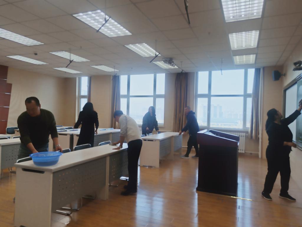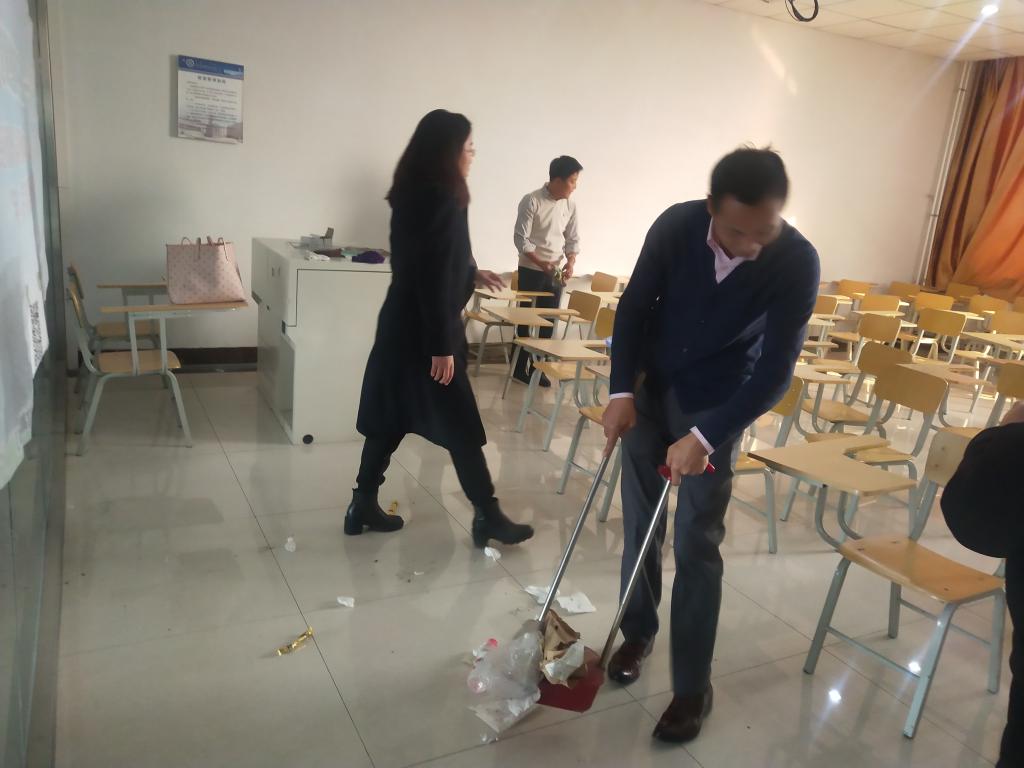 為響應黨的號召,深入開展“不忘初心、牢記使命”主題教育,充分發揮基層黨組織戰斗堡壘作用和共產黨員先鋒模范作用,10月28日下午,教務處、就業處黨支部結合近期學校開展的“不忘初心、牢記使命”主題教育安排,組織支部全體黨員到綜合樓507公共教室和802錄播教室開展黨日義務打掃衛生活動。活動的目的是號召全體黨員用實際行動凈化校園環境,為全體師生創建文明、和諧、干凈的工作與學習環境。