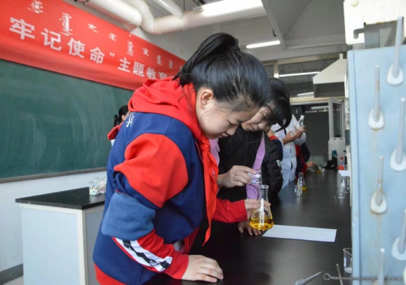 為踐行“不忘初心,牢記使命”主題教育,落實“三個結合”,推進化學與環境學院科學教育專業實踐教學,加強義務教育階段學生對科學知識的感知認知和對生態文明建設的了解。10月24日下午,呼和浩特市春蕾第一小學科學實驗興趣班24名同學在3名老師的帶領下來到學院進行興趣實驗活動現場體驗。