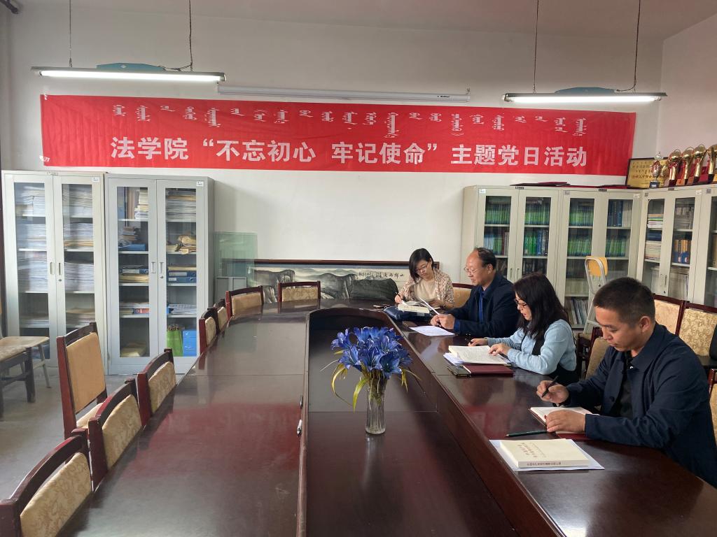 根據學校黨委“不忘初心、牢記使命”主題教育總體安排,10月24日,法學院黨總支在學院資料室召開主題教育推進會。黨總支書記烏蘭其其格主持會議,學院處級班子成員參加會議。