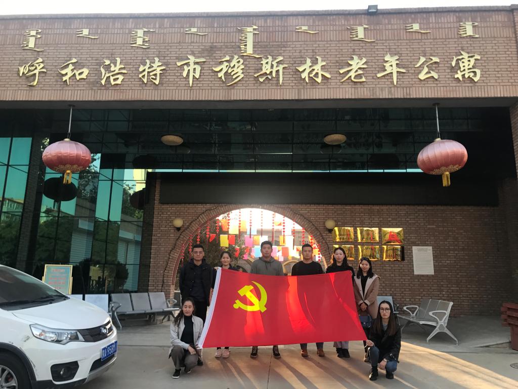 為更好的踐行“不忘初心、牢記使命”主題教育,通過(guò)開(kāi)展志愿活動(dòng)的方式,強(qiáng)化黨員學(xué)生為民服務(wù)、奉獻(xiàn)社會(huì)的責(zé)任感,10月21日下午,蒙古學(xué)學(xué)院與新聞傳媒學(xué)院學(xué)生黨支部前往呼和浩特市穆斯林老年公寓開(kāi)展了“不忘初心、牢記使命”主題教育志愿服務(wù)活動(dòng)。蒙古學(xué)學(xué)院、新聞傳媒學(xué)院學(xué)生黨支部書(shū)記根領(lǐng)、白淑華帶隊(duì),支部全體黨員同學(xué)參加了活動(dòng)。