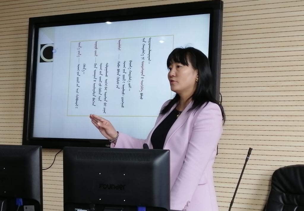 葉爾達(dá)教授以《準(zhǔn)噶爾的文字世界》為主題,以長達(dá)19年豐富的托忒文文獻(xiàn)田野調(diào)查工作經(jīng)驗(yàn)為著手點(diǎn),介紹了新疆蒙古族的組成、伊犁河流域生活的衛(wèi)拉特人的組成。從伊犁河流域搜集到的17、18世紀(jì)托忒文史學(xué)、佛學(xué)、民俗學(xué)、民間文學(xué)相關(guān)的木刻版本文獻(xiàn)、頗為壯觀的石刻版托忒文文獻(xiàn),闡述了衛(wèi)拉特人的抄書、藏書、敬書、開書等民俗及文獻(xiàn)用紙的手工制作、木刻等技術(shù)。格日樂瑪老師以《認(rèn)知語言學(xué)與蒙古語研究》為主題,從介紹認(rèn)知語言學(xué)誕生的理論背景、產(chǎn)生年代、發(fā)展脈絡(luò)等入手,結(jié)合認(rèn)知語言學(xué)理論方法和極為豐富的蒙古語五蓄諺語、格言,闡釋了蘊(yùn)藏于蒙古語中的民族文化心理特點(diǎn)及文化心理變遷脈絡(luò)。