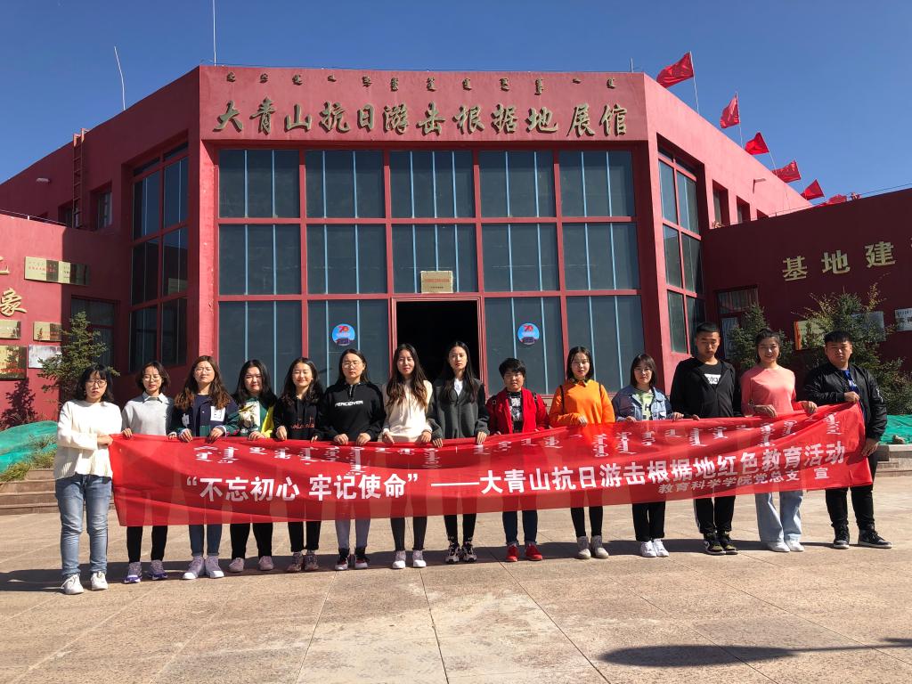 10月11日教育科學學院黨總支組織教師及學生黨員前往武川縣大青山抗日游擊根據地展館開展“不忘初心、牢記使命”主題教育。