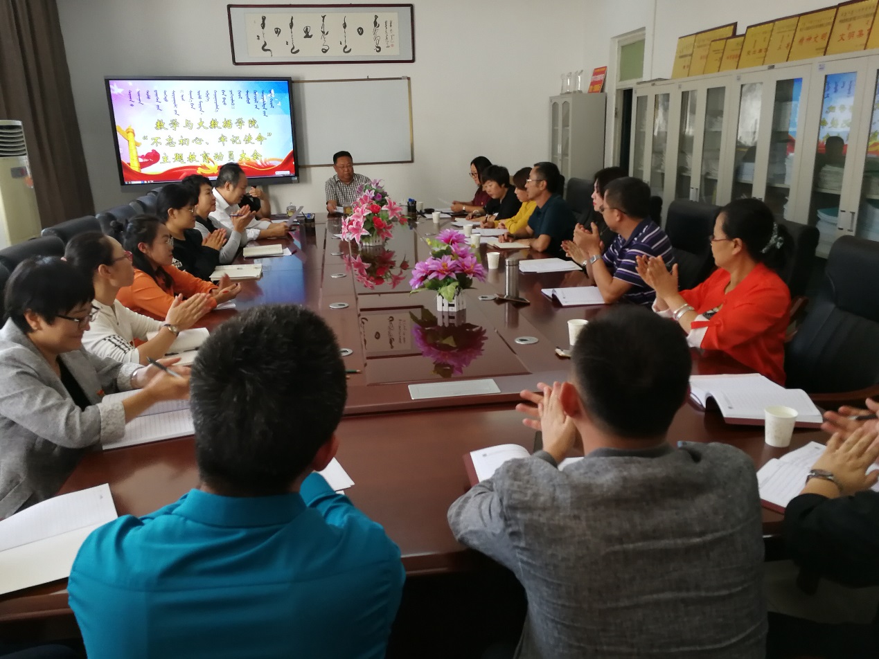 為深入學(xué)習(xí)貫徹習(xí)近平新時代中國特色社會主義思想和習(xí)近平總書記關(guān)于“不忘初心、牢記使命”主題教育一系列重要指示批示精神,深入落實(shí)中央、自治區(qū)黨委和校黨委“不忘初心、牢記使命”主題教育部署會議精神,9月18日下午在沃德樓205會議室召開數(shù)學(xué)與大數(shù)據(jù)學(xué)院“不忘初心、牢記使命”主題教育動員大會。學(xué)校“不忘初心、牢記使命”主題教育第三指導(dǎo)組組長海泉處長一行四人到會指導(dǎo)。黨總支書記布和朝魯教授作動員部署講話,學(xué)院黨政班子成員、全體師生黨員參加了會議。會議由黨總支副書記郝喜鳳主持。