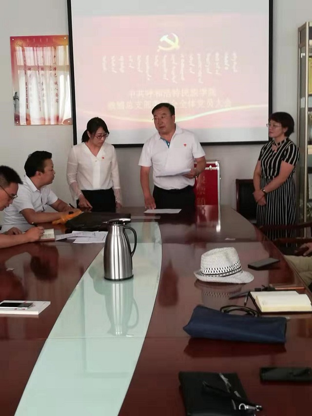 根據《中國共產黨章程》《中國共產黨基層組織選舉工作暫行條例》和《中國共產黨普通高等學?;鶎咏M織工作條例》有關規定,按照學校黨委印發的《呼和浩特民族學院基層黨組織換屆選舉工作方案》的統一部署,7月8日上午,教輔黨總支召開換屆選舉全體黨員大會,教輔黨總支23名黨員參加會議(應到25名、1名請假、1名未到)。大會由教輔黨總支書記兼對外合作與交流中心主任那日蘇主持。