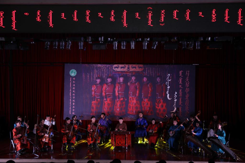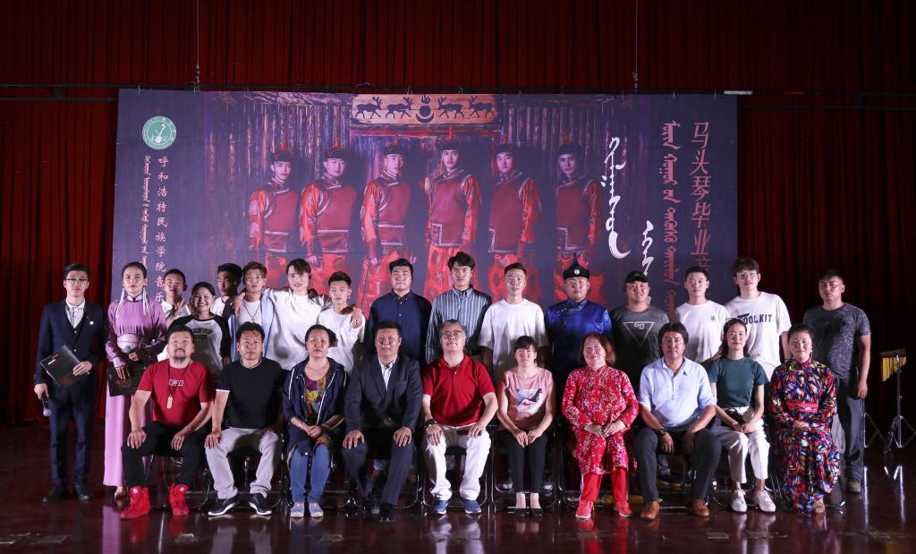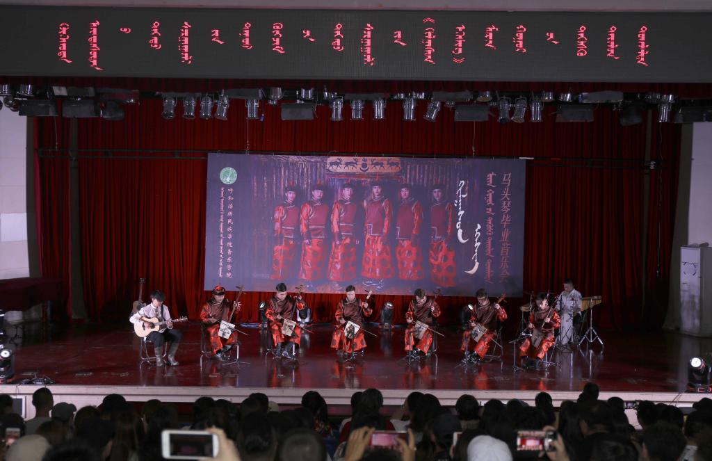 近日,在我校圖書館二樓報告廳舉辦了“胡弦之韻”馬頭琴畢業音樂會。本次音樂會演職人員是由音樂學院優秀青年教師,器樂教研室主任辛巴雅爾老師的六名學生組成。著名馬頭琴演奏家、國家一級演員陳巴雅爾先生、學校教務處副處長佟繁榮、音樂學院書記格日樂、音樂學院副院長薩日胡出席本次音樂會,音樂學院部分教師、學校各院系學生700余人共同觀看了本次演出。