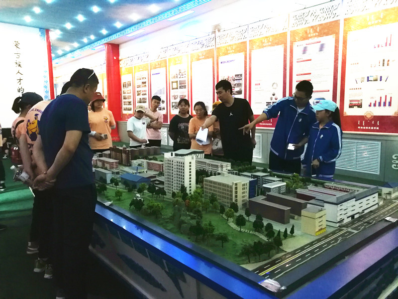 首先教務處姚全福老師引導烏拉特前旗蒙中師生一行到學校校史館參觀,就學校建校歷史以及學科建設、專業建設、師資隊伍建設和人才培養等方面的情況作了深入了解。隨后,烏拉特前旗蒙中師生一行參觀圖書館、綜合樓實驗室和體育館,姚全福老師詳細介紹了圖書館六樓考研自習室基本情況及學校考研輔導班的相關政策、各教學實驗室功能以及校園足球隊的參賽獲獎風采。