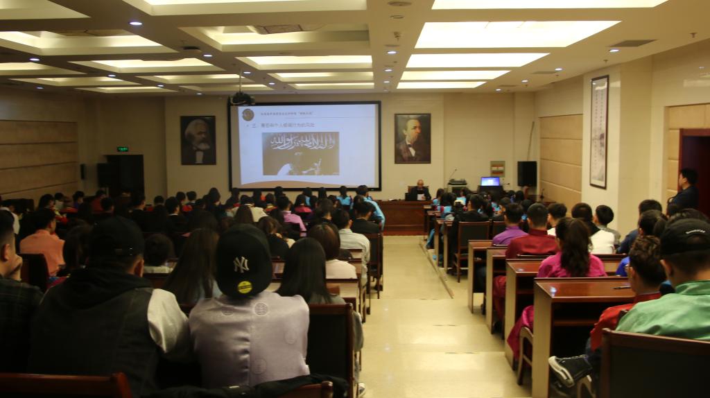 活動邀請安全廳駱處長在圖書館一樓報告廳為220名師生就國家安全法、公民如何維護國家安全等內容進行授課;展出以國家安全、反邪教、防黃、手冊1000本,并利用條幅、校園網、微信平臺等媒介廣泛宣傳了安全防范知識。