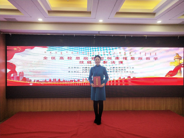 12月8日—9日,自治區教育廳、總工會和人力資源和社會保障廳在內蒙古大學舉辦大賽決賽。決賽中來自28所高校的30名思政課程教師和18名專業課教師同臺競技。通過課堂教學展示、教學設計和專家提問等環節的激烈角逐,我校馬克思主義學院蘇亞拉老師以優異的成績榮獲思政課程比賽第二名 。(馬克思主義學院)