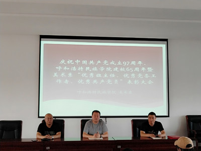 為了深入學習貫徹習近平新時代中國特色社會主義思想,推進“兩學一做”學習教育常態化制度化,落實學校黨委“344+”黨建推進工程,慶祝“中國共產黨成立97周年、呼和浩特民族學院建校65周年”,美術系黨總支于7月4日召開了“慶祝中國共產黨成立97周年、建校65周年”表彰大會。會議由美術系黨總支副書記包旭東主持,美術系副主任巴圖、團總支書記白永泉、四個黨支部書記、全體師生黨員和班主任參加了會議。